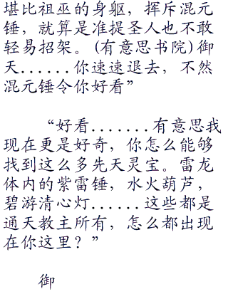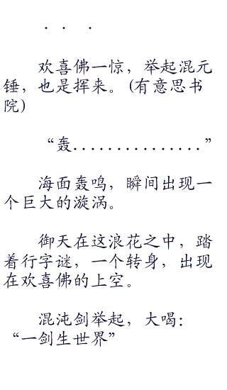 本来将欢喜佛的右手斩断,却发现一个小锤子出现,这锤子散发凝重的气息,挡住御天的混沌剑。