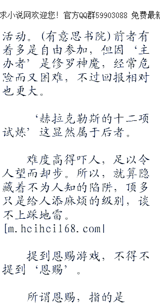 ;;;;恩赐游戏主要分为几个类型,有修罗神魔为考验人类以试炼为名举办的比赛,也有为展现公会力量独自举办比赛的