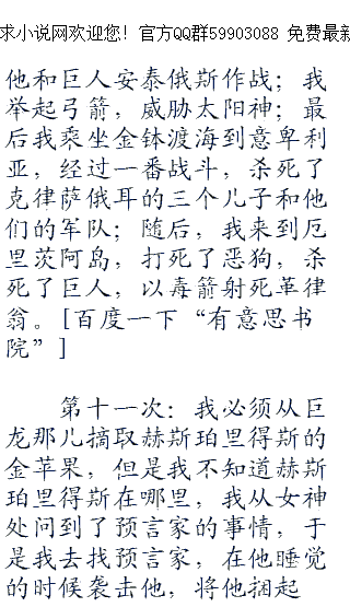 ;;;;第二次,我与一条九个头的大毒蛇战斗,它比狮子聪明许多,费劲千辛万苦终于杀死了它,得到了毒箭。