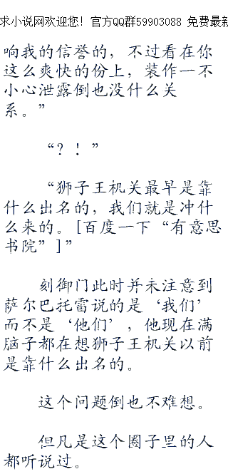 ;;;;无数组织、国家机构都对他抛出了橄榄枝,可他却不予理睬,依然我行我素的当着独行侠。而这帮整天玩斗争游戏的家伙们也不傻,虽然无法将之纳入麾下,但还是可以借助他的力量。不就是钱吗?他们有的是,再不济,打好关系也是好的。