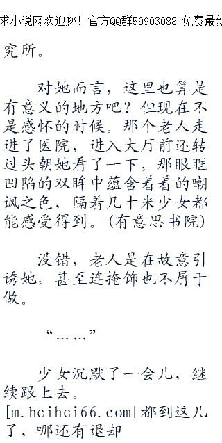 ;;;;正当她心情沉重想要离去的时候,忽然感觉到了什么,转头望向街道拐角,只见一个瘦骨嶙峋的老人冲她嘿嘿一笑,然后转头离去。