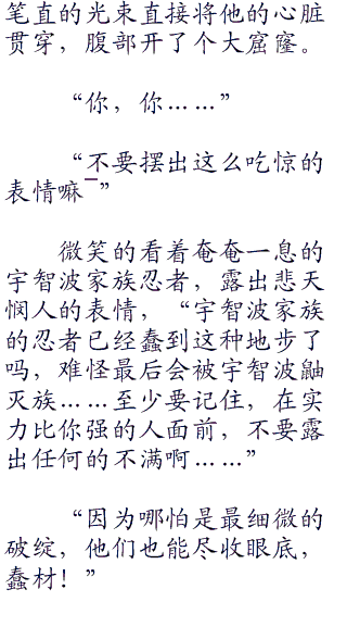 刺眼的光芒令三名宇智波家族忍者皆是一愣,胡茬大汉袭来的大手也延缓了瞬间。