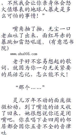 渗人的嚎叫声断不绝耳,引得左邻右舍暴跳如雷,但是碍于强势的无尘,他们还是选择的识趣闭嘴,静静的听着那杀猪般的歌声,直到精神崩溃为止……