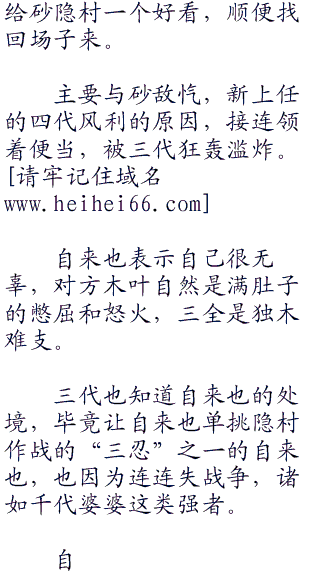 ,第三次的忍界大战,木叶都会立于不败之地,尽管三代老头表现出一副火烧屁|股的模样,无尘也知道这老头真心不会多害自己猜测,三代老头巴不得那群逗比打到木叶来,然后在“无可奈何”之下,放出九尾和初代目和二代目咬死他  不管如何