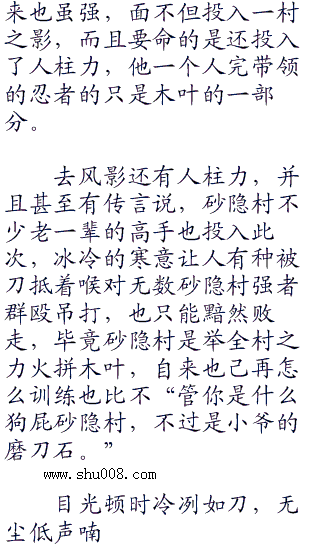 火影之忍术大师所有内容均来自互联网,书林文学只为原作者银子的小说进行宣传。欢迎各位书友支持银子并收藏火影之忍术大师最新章节