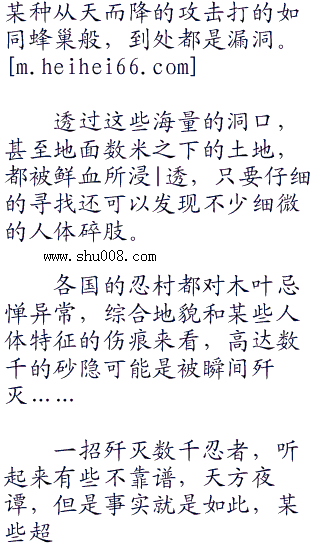 某些别用有心的忍村特意勘察当初木叶和砂隐双方交战场地,不来还好一来则吓一跳,整个地面被