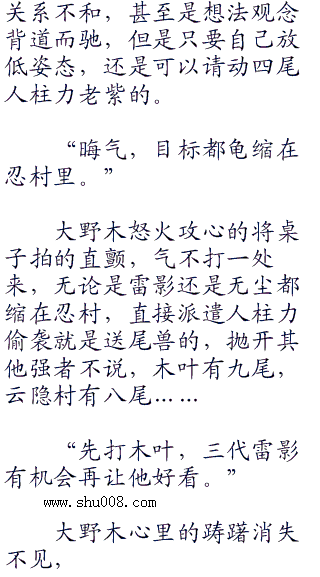忍界各国异常震惊短短几天内木叶将砂隐覆灭,尤其是砂隐的忍者几乎全部散失殆尽,更是给各国的的忍者村敲响一记警钟。