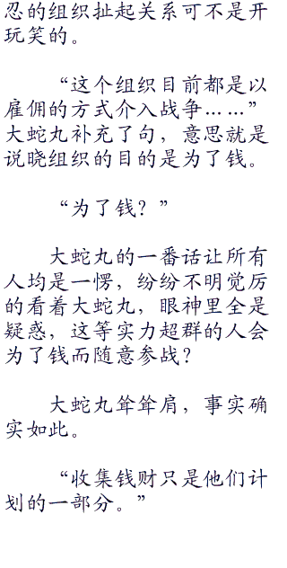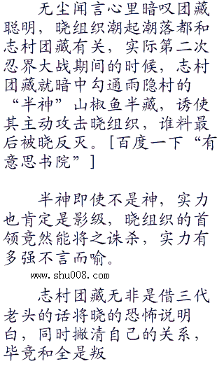 将暗自吐槽的自来也无视,三代老头老神在在的自言自语,声音里的鄙夷不屑任所有人都能听出来,意思是说大野木和以往一点也没有变化,还是喜欢的耍阴谋诡计。