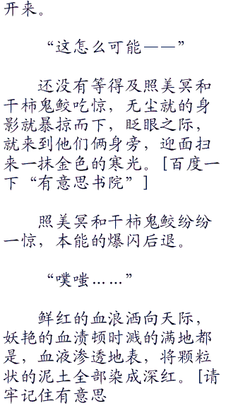 回过头来撇了干柿鬼鲛一眼,继而直接将那张皮笑肉不笑的鲨鱼脸无视,她倒是好奇无尘能如何防御她的溶遁。