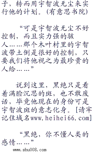 黑绝心里不可避免的阴沉下来,他对斑那狗屁的“月之眼”计划没有丝毫的兴趣,甚至是嗤之以鼻,他唯一的目的,或者说他存在的本质,就是复活他的母亲——大简木辉夜姬。