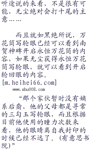 黑绝沉默下来,只是淡淡的看着斑,这么简单的意思斑不可能不明白,万花筒写轮眼可不是什么普通的勾玉写轮眼,一定程度上已经能看清宇智波家族南贺神社那块石碑的内容,很难免无尘会做出什么丧心病狂的事情来!