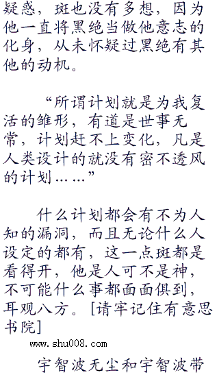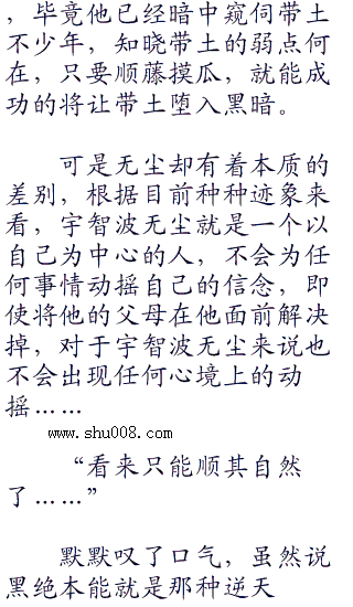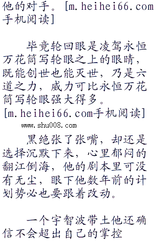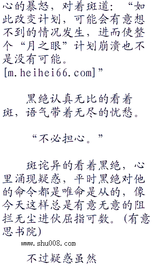 黑绝眼巴巴的看着满脸决然的斑,他很希望斑能回心转意,放弃宇智波无尘,毕竟,事关复活大简木辉夜姬的计划,数千年的谋划,黑绝更是半点都不敢马虎。