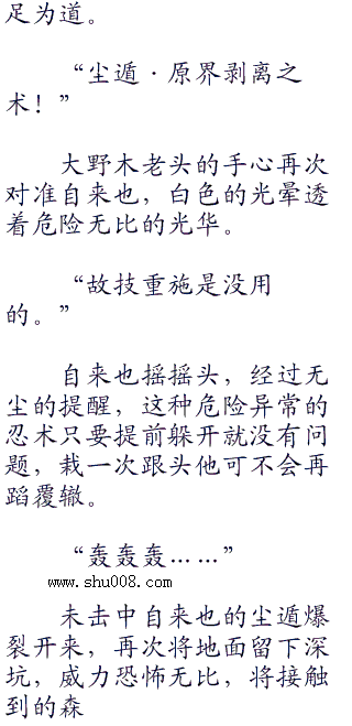 无尘焦急的怒吼声如同魔咒一般,瞬间控制了自来也的思维,令自来也条件反射般的直接爆闪而开,逃脱了大野木瞄准的地点。