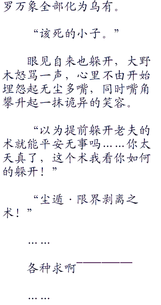 大野木漂浮在天空上,面容不善的盯着不以为意的无尘,看着无尘满脸无所不知,一切尽在掌握的神色,内心阴沉的能滴出水来。