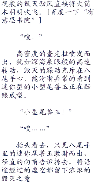 也许八尾不如九尾强大,查克拉含量有着差距,但是作为尾兽里的老|二,他的实力毋庸置疑,若不是碰到无尘这种拥有写轮眼的天敌,恐怕真没有多少人将他拿下。