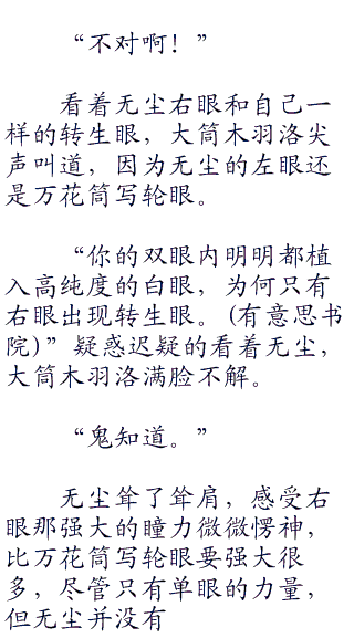 感觉平静如同死水般,没有任何变化的左眼,无尘心里充满疑惑和不解,因为前几天大筒木羽洛都已经提前在无尘的双眼内植入高纯度的白眼力量,右眼暴躁的如同雷电,左眼确是安静如死水。