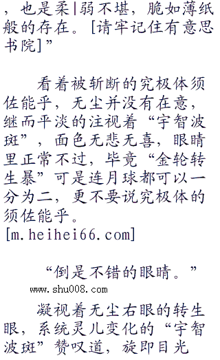 嘴角扬起藐视的笑容,看着那几乎遮住天空的究极体须佐能乎,无尘毫无畏惧,不但如此,面庞还带着赤|裸的不屑。
