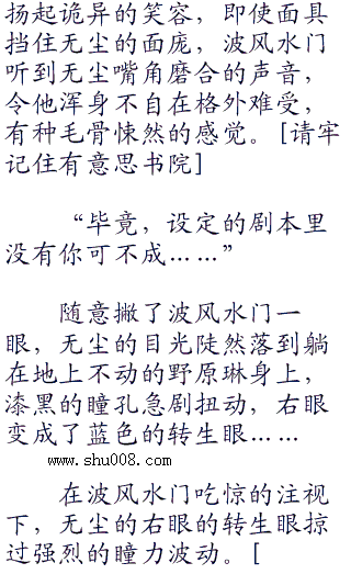 深蓝色的眸子紧紧的盯着无尘的背影,没有任何的晃动,眼见无尘不躲不避,任由螺旋丸接触自己的身体,波风水门的眉宇间不自觉的挑了起来,眉头紧皱着,形成一个清晰无比的“川”字。