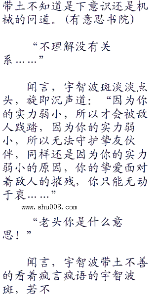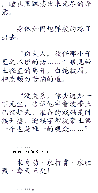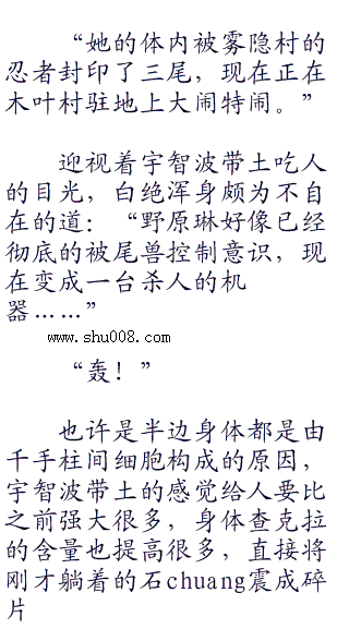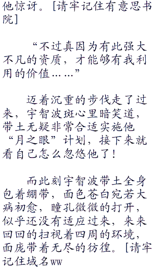 宇智波斑看着石chuang上躺着的少年,老眼里闪过浓浓的诧异,宇智波带土半个身体都被砸碎,竟然还能够坚持到白绝来救他,这股旺盛至极的生命力让
