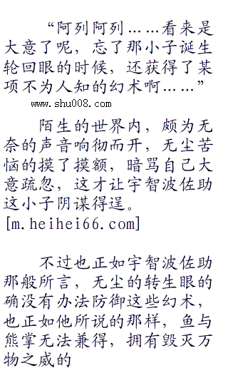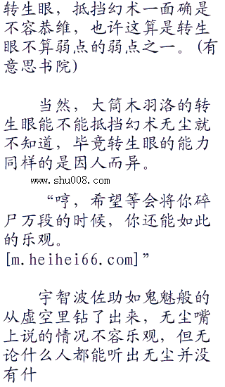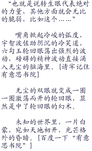 将无尘的不耐烦直接干脆的无视,宇智波佐助自顾自的的道:“所谓忍术都有不为人知的弱点和漏洞,这一点我的轮回眼不例外,你那个所