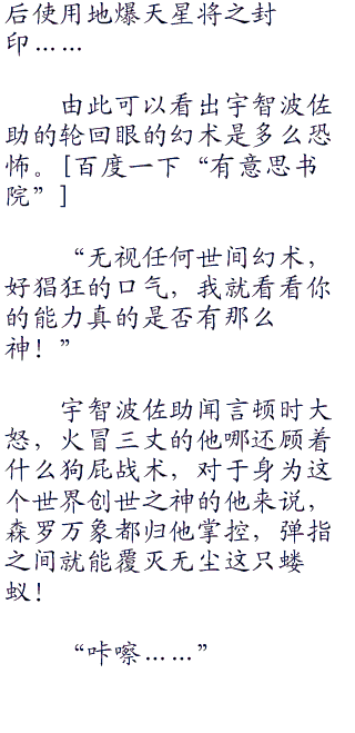 强忍着内心吐血的冲动,宇智波佐助咬着牙从天丛云剑里挣脱,刺痛和灼烫顿时由腹部遍布全身各个角落。