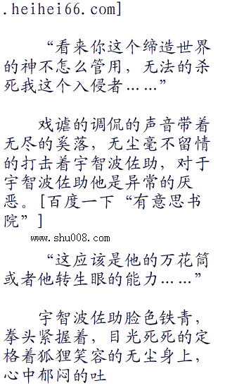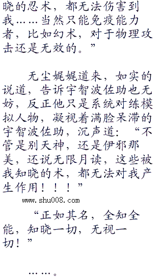将无尘的冷嘲热讽直接无视,宇智波佐助恢复如初,无尘洞穿的腹部转眼就愈合起来,继而阴沉不善的看着淡漠的无尘,说道“神”字的时候,故意咬重字音,生怕无尘听不出来什么意思。