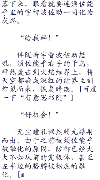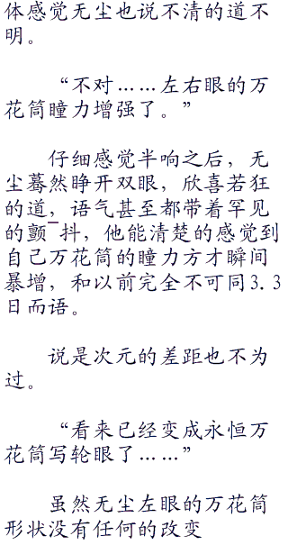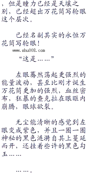 似乎是看出无尘接连使用瞳力的疲乏,宇智波佐助抓准时机向着无尘扑来,须佐能乎手里闪耀着刺眼的雷芒令人根本无法直视。
