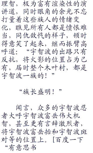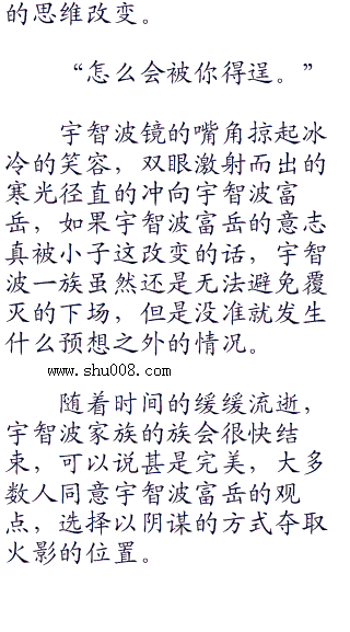 “想不到宇智波鼬那个小子竟然没有开启万花筒写轮眼……换句话来说,也就是现在的宇智波止水还活着。”