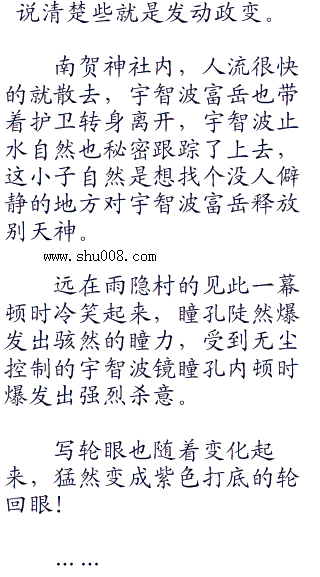 穿梭于密林的人影赫然是宇智波镜,速度极快转瞬即逝,身为操纵者的无尘自然还远在雨隐村用他的超强瞳力控制着宇智波镜的行动。