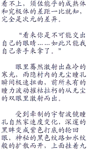 万花筒写轮眼死死的盯着面带着笑容的宇智波镜,宇智波止水满脸的难以置信,眼前这具傀儡实在太过逼真,说他是正常的人类也没有人不会相信。