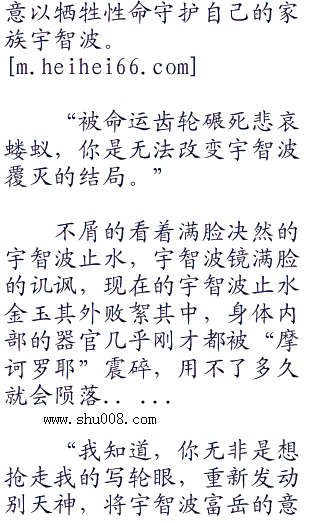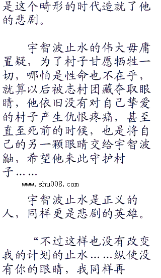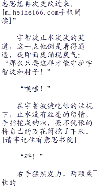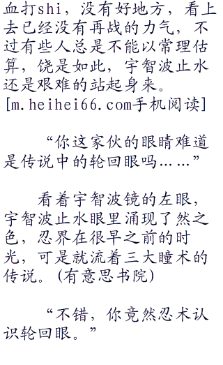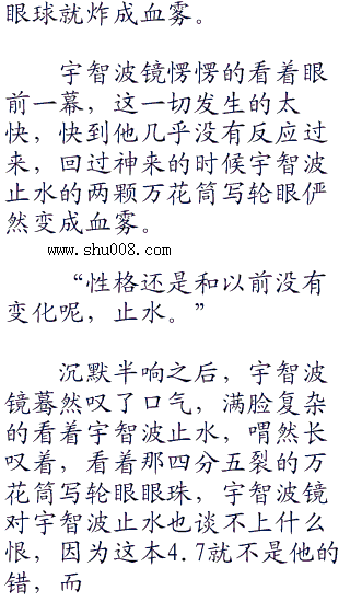 半空中溅起一抹腥味的血红,抬头看去赫然是被斥力撞飞的宇智波止水,浑身上下全是血渍,体无完肤,浑身的衣物全都被鲜