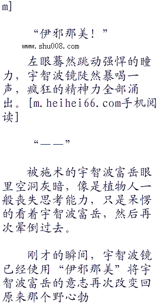 “蠢材,以为你的万花筒没了就能阻止我吗,反正用的是宇智波镜的眼睛,只是损失一颗眼睛而。”