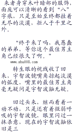 宇智波止水无力的跌倒在地,已经丧失万花筒写轮眼的他,彻底的成为待宰的羔羊,杀与不杀完全取决于宇智波镜的意愿。