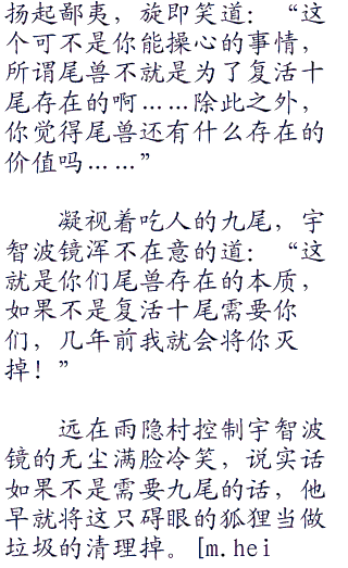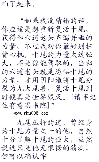 察觉浑身查克拉被抽干的九尾脸色铁青,巨大的眼睛阴晴不定的看着无尘,他可以清楚的感觉到束缚身上的木遁的强大。