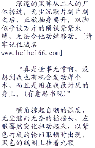 黑暗的房间里,半空划过冰冷的寒光,顿时荡出两抹妖艳的狭长雪花,视线极佳的无尘便看到宇智波富岳夫妇相继倒地,当场殒命。