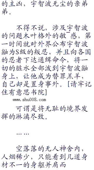 宇智波鼬面孔淡漠的看着狰狞着小脸的佐助,将那仇恨的脸颊尽收眼底,同时眼底深处的黯然一闪而逝。