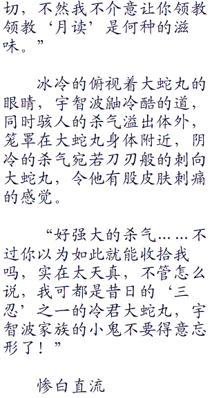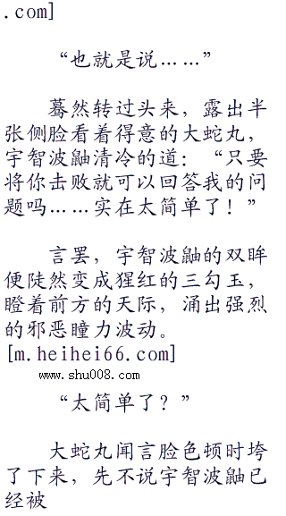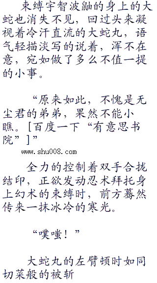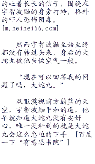 前所未有的巨力将宇智波鼬紧紧缠~绕,层层包裹多达十几圈后才停止下来,粗大的忙色狰狞的看着古井无波的鼬,嘶嘶