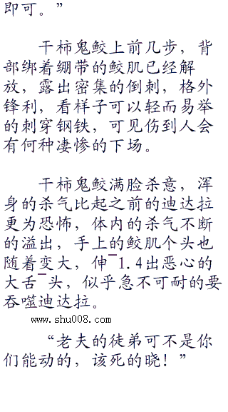 调侃戏谑的目光收了回来,感受那股骇人的杀气,干柿鬼鲛多了些许的慎重,看来这小子年龄年幼倒是不错,杀的人确是不在少数,而且从这杀气规模密度上来看,有不少人都是属于高手。