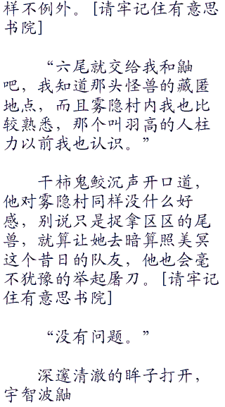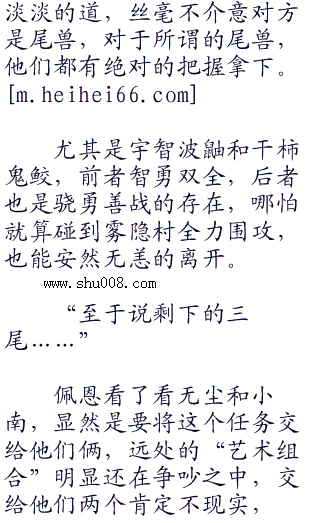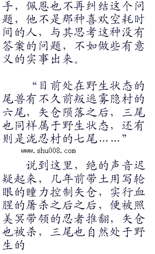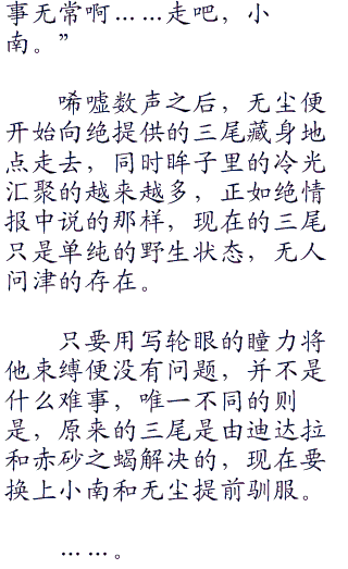 绝乃是“晓”里唯一独立独行的存在,情报的重任也由他独自负责,情报遍布全世界,如今竟然说八尾行踪不明,佩恩怎能置若罔闻,当下就是质疑的看着绝,瞳孔里跳动着阴晴不定的光芒。