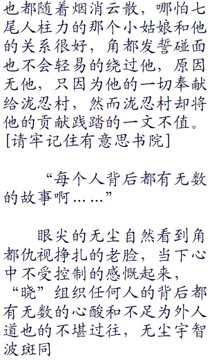 “晓”组织成员清一色的都是各方各面的能人异士,要么就是实力强大,要么就是有着特殊的能力。