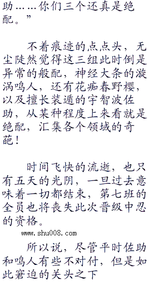 稚嫩的忍者们彼此暗暗观察着对方,很快的一个拥有红头发和眼圈的小鬼,就映入了他们的视线之中。
