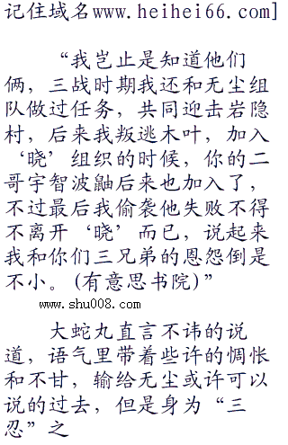 满脸苍白的大蛇丸从林中走出,之前的女人皮肤也宛如蜕皮似的褪掉,露出他原本就不男不女的原来面貌,整个人透着阴冷的气息,给人的感觉格外的压抑。