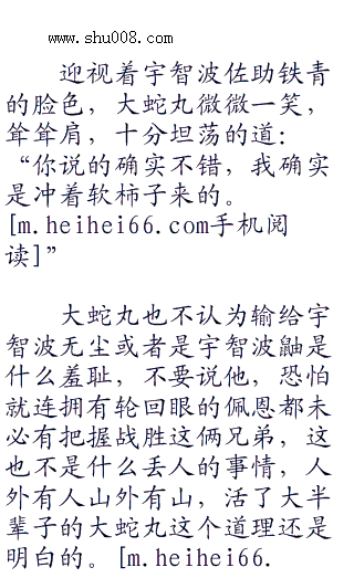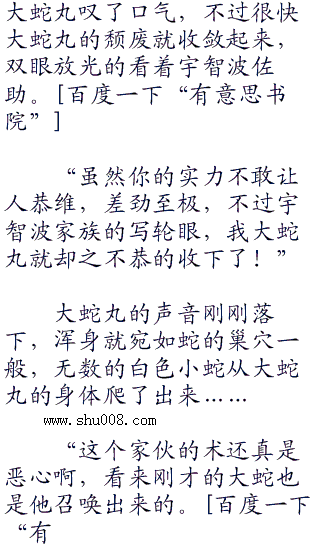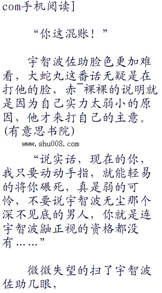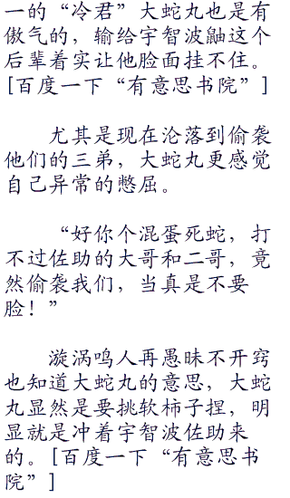 大蛇丸看着脾气火爆的宇智波佐助不由一愣,继而神采奕奕的看着他,或者干脆看着宇智波佐助的身体,蛇瞳时而掠过璀璨的光芒,像是碰到美女的野兽一样,格外的兴奋!