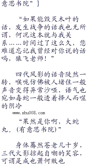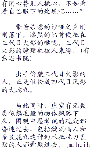 与三代目并排而坐的四代风影,也就是大蛇丸暗自摇头,宇智波佐助的天赋和努力是没有话说的,但是却过于高傲自负,甚至是目空一切。
