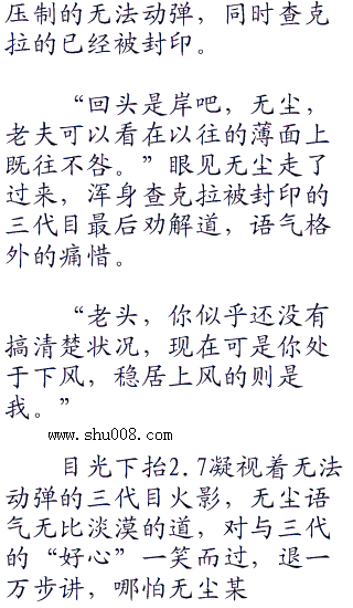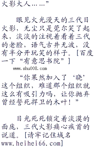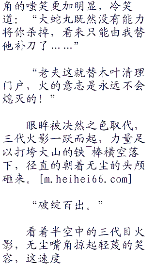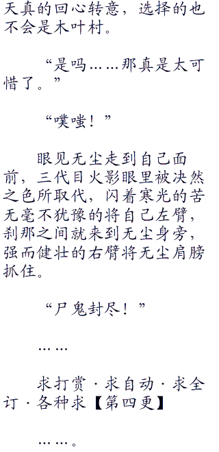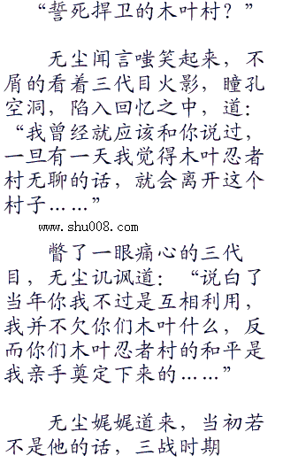 三代火影呆滞的看着从天而降的人影,瞳孔蓦然恍惚起来,陡然想起十几年前那个为木叶村鞠躬尽瘁死而后已的稚嫩少年。