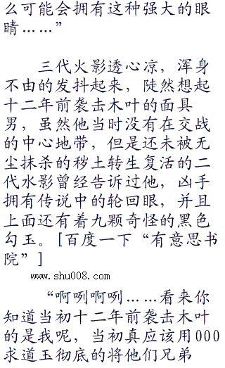 “结束了?如此就断定结束不是太可笑了吗,火影大人,就凭你还是差的跳远!”