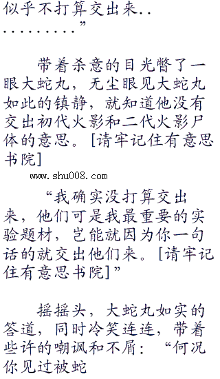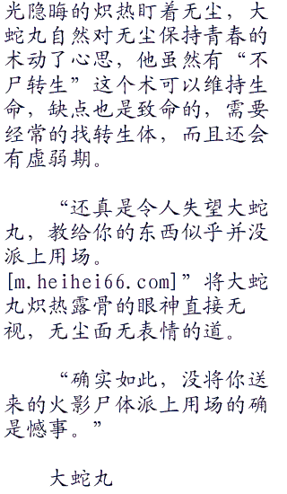 自来也和大蛇丸也是同级别的强者,两人彼此都没有捡到便宜,双方也只能罢手收场,期间自来也又施展嘴遁功夫劝解大蛇丸,试图让他回头是岸。然而理想美好现实残酷,自来也的嘴遁明显不及大蛇丸,反而被大蛇丸忽悠的三荤到素的。