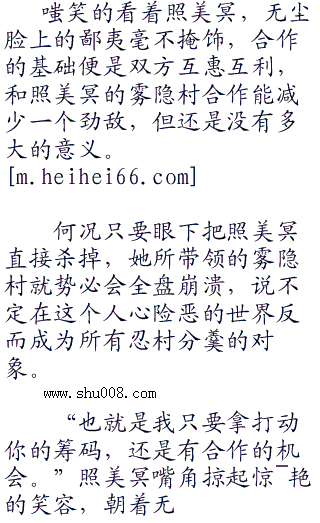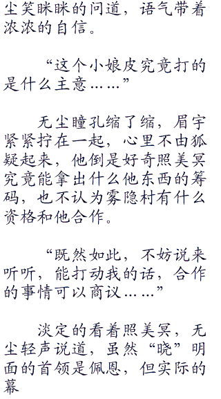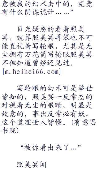 眼见照美冥对视着自己的眼睛,无尘不解起来,和拥有写轮眼的忍者对战绝对不能看对方的眼睛,这是举世皆知的。