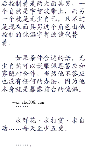 漠然瞥了一眼被赤砂之蝎纠~缠住的自来也,无尘浑不在意的笑了笑,有的术不是说知道它的弱点就能防御的。
