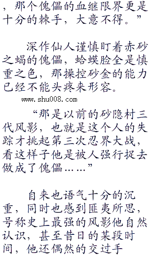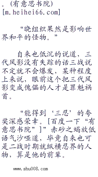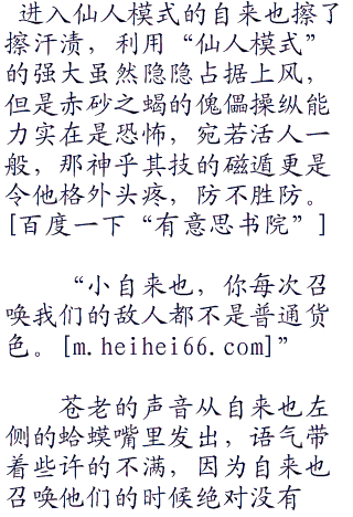 赤砂之蝎面无表情,内心却是疑惑不解,他不知道所谓的“仙人模式”究竟为何,也没有见过,但是此刻他最大的兴趣就是想要将自来也的尸体解剖解剖。